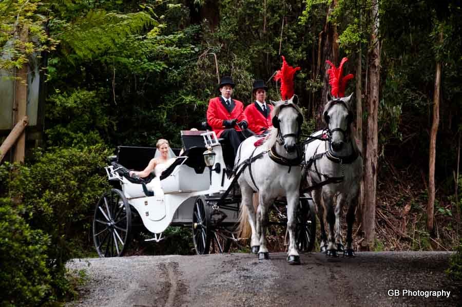 Wedding of Tonya and Matt was to me a beautiful day spent with great and amazing people. Tonya was preparing for the Wedding Ceremony with her Bridesmaids and her Mum, where we took some beautiful photos of the girls. Soon my destination became the Lyrebird Falls Reception in Kallista, and Matt was already awaiting his Bride to arrive there. Once Tonya has finally arrived in a stunningly looking horse carriage she has amazed everyone... The Ceremony was held at the same place and after that we went for a nature Wedding Photo walk around the Reception place.