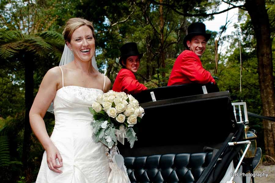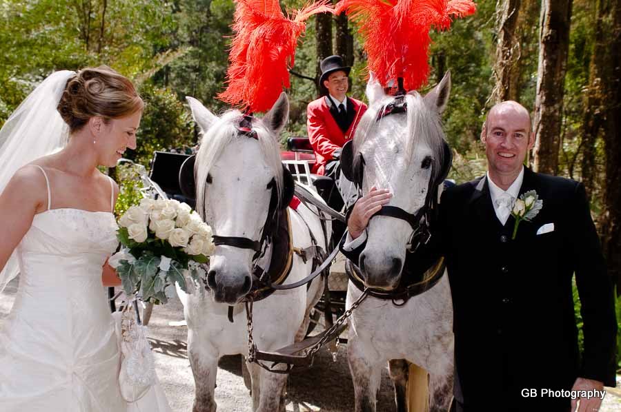Wedding of Tonya and Matt was to me a beautiful day spent with great and amazing people. Tonya was preparing for the Wedding Ceremony with her Bridesmaids and her Mum, where we took some beautiful photos of the girls. Soon my destination became the Lyrebird Falls Reception in Kallista, and Matt was already awaiting his Bride to arrive there. Once Tonya has finally arrived in a stunningly looking horse carriage she has amazed everyone... The Ceremony was held at the same place and after that we went for a nature Wedding Photo walk around the Reception place.